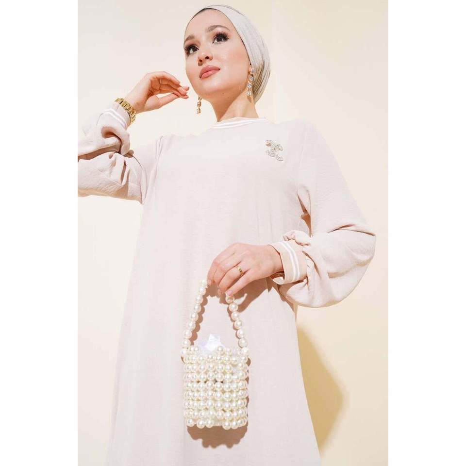 ชุดสีเบจกับแขนและคอปก