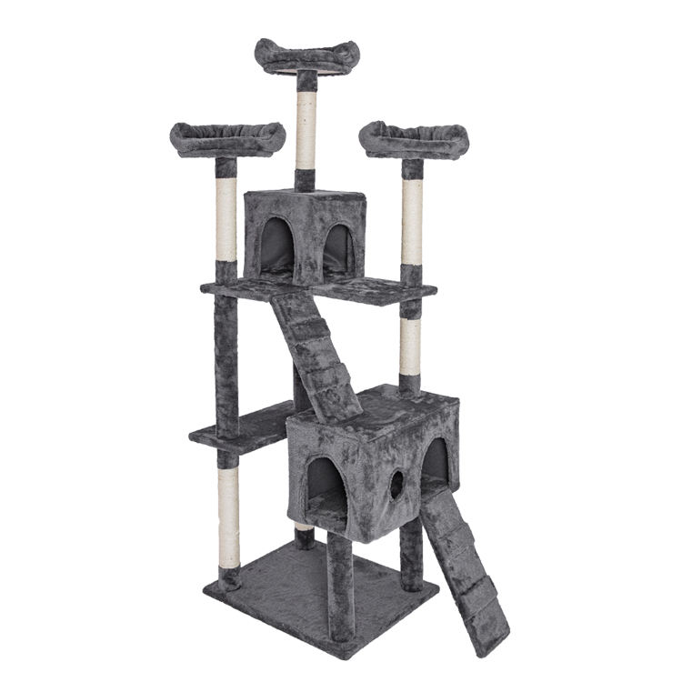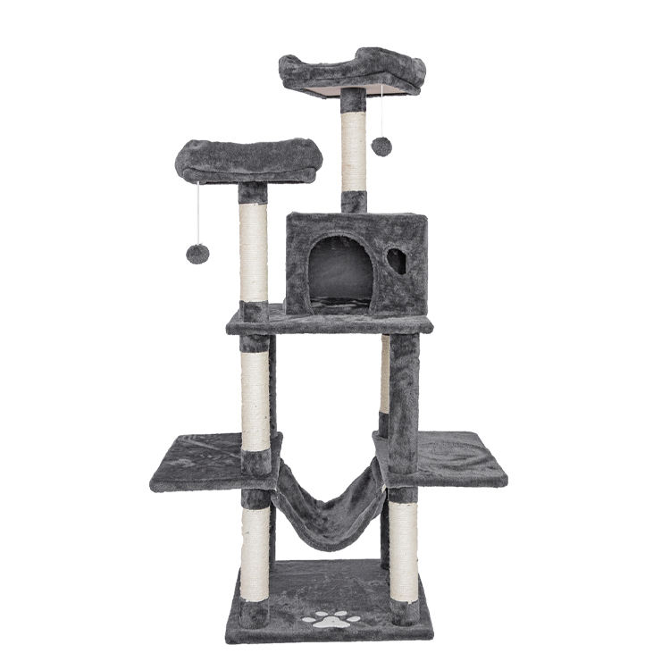 แท่นวางต้นไม้สีเบจเป็นมิตรกับสิ่งแวดล้อมแพลตฟอร์มคอนโดและคอนที่สะดวกสบายสำหรับแมวในบ้านทำจากไม้เสาข่วนทำจากป่านศรนารายณ์