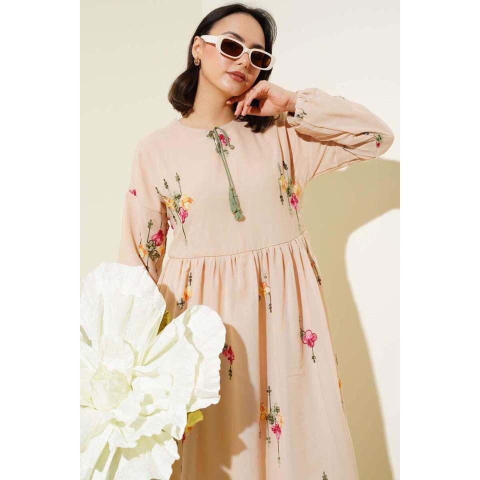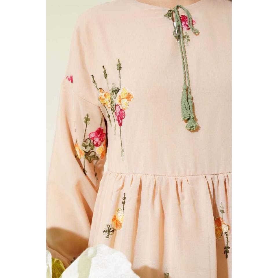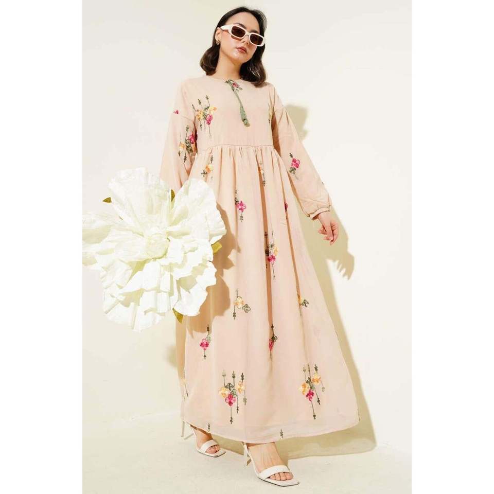 ชุดชีฟองปักสีเบจ