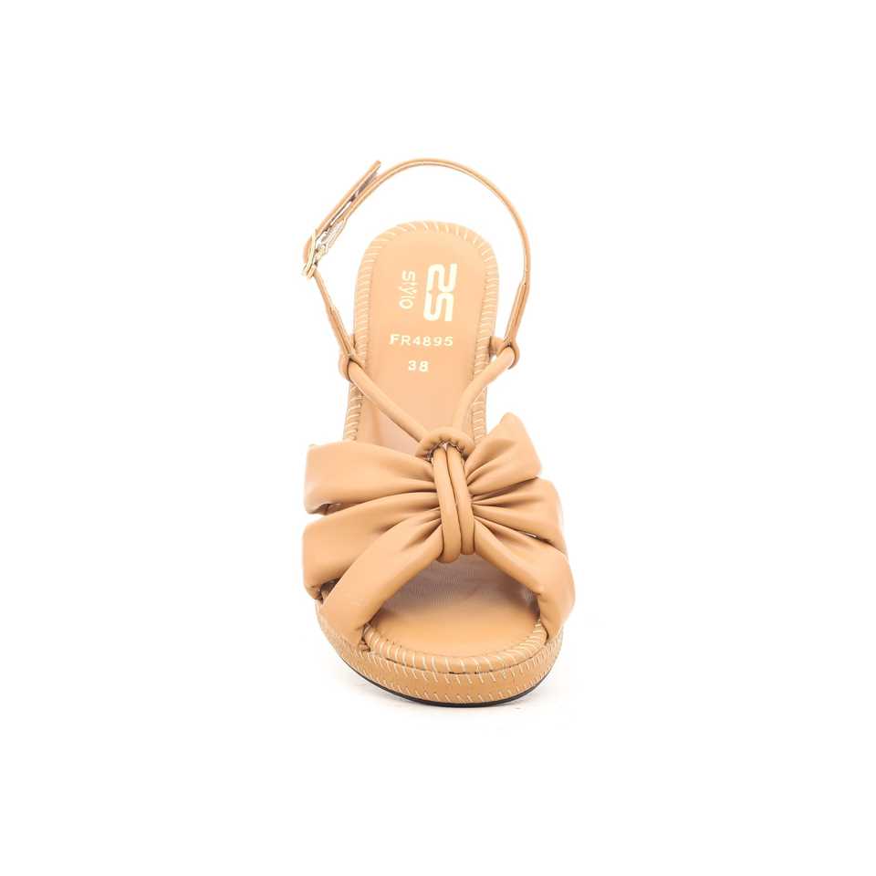 FR4895รองเท้าแตะส้นทางการสีเบจ