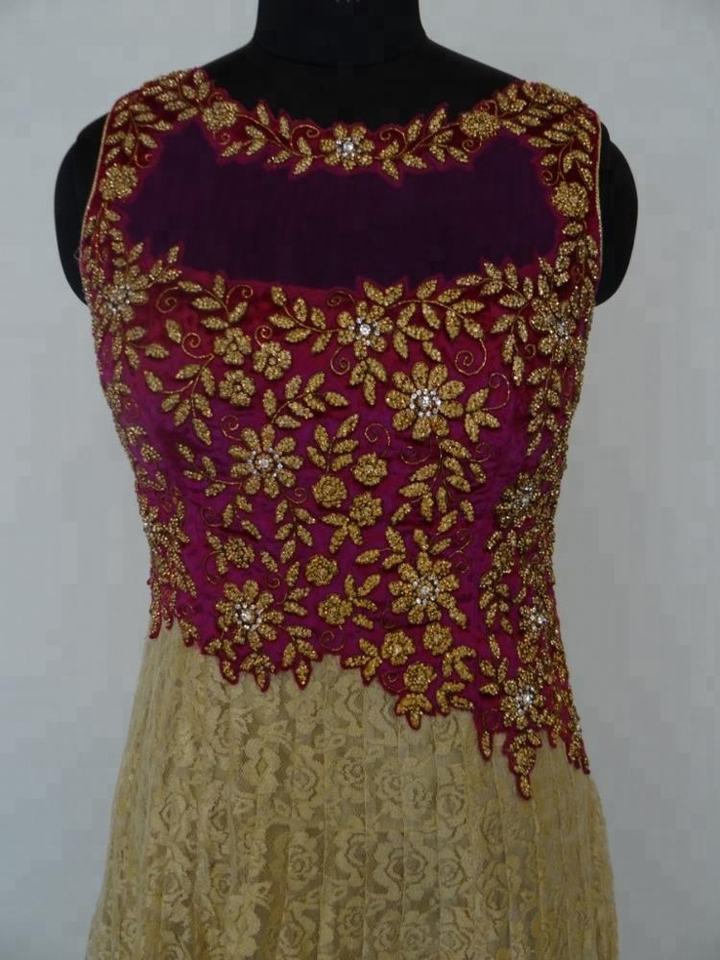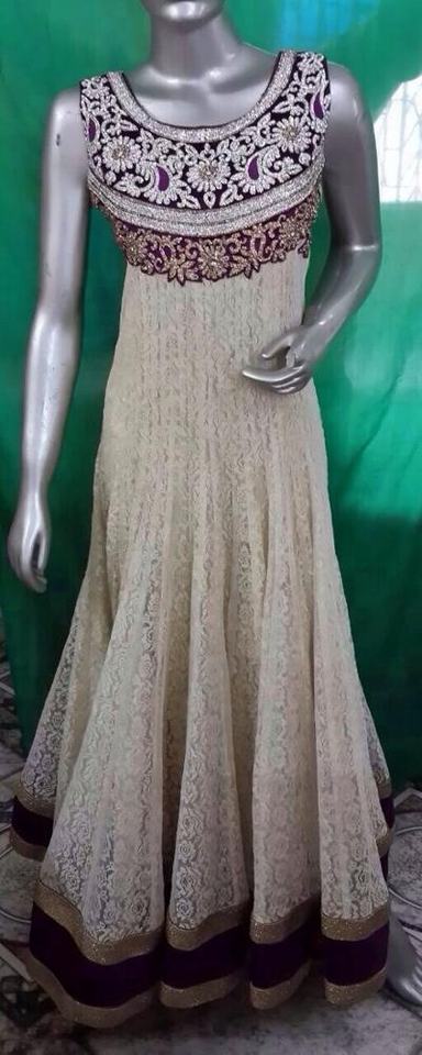 สีเบจ Georgette พรรคสวมหนักเย็บปักถักร้อยทำงาน Salwar Kameez-อินเดีย Salwar Kameez-Salwar Kameez ออกแบบ2018