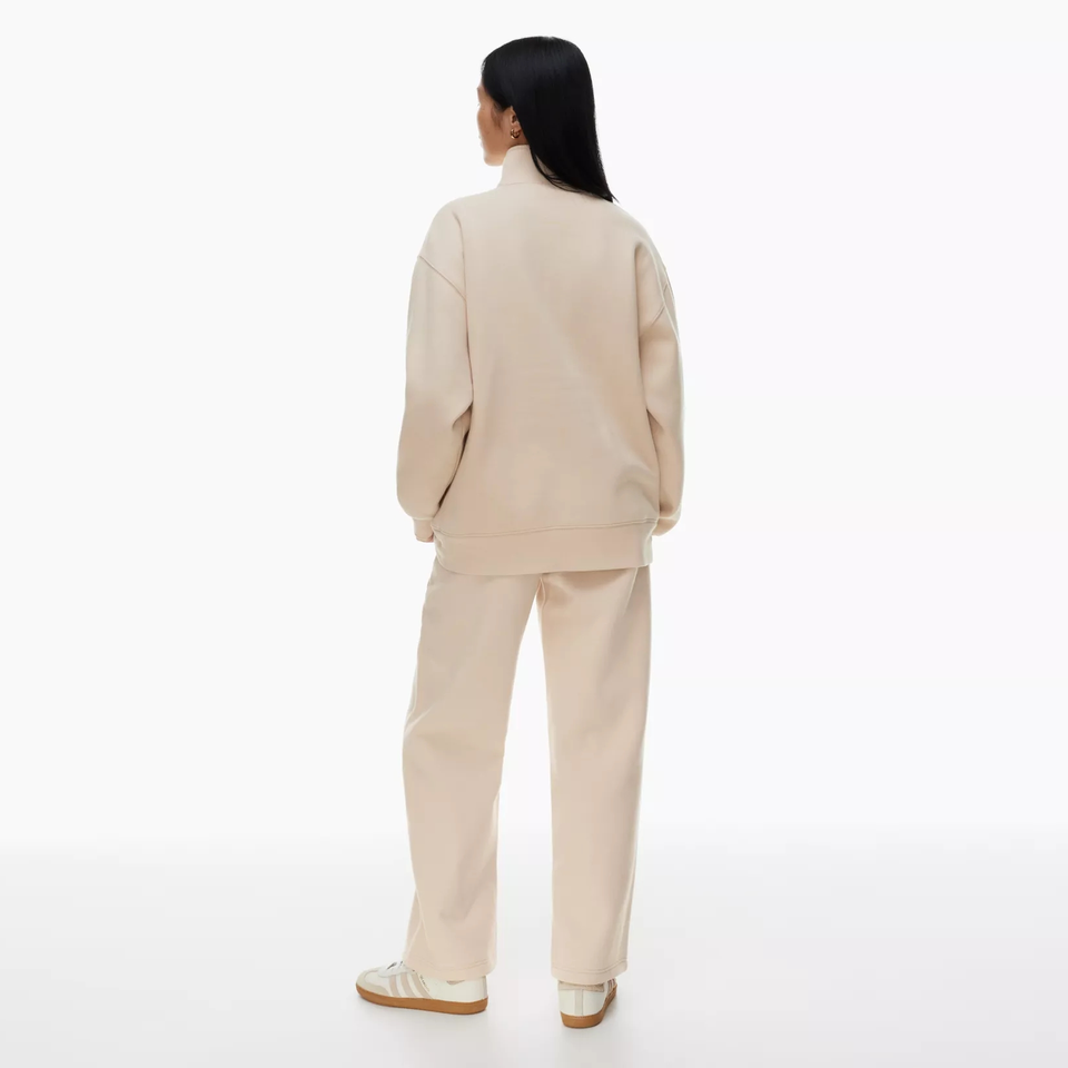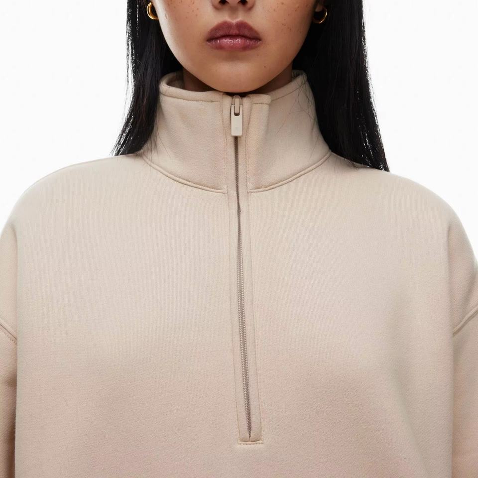 ชุดวอร์ม2ชิ้นสำหรับผู้หญิงสีเบจแบบสวมหัวซิปครึ่งแขนเสื้อสเวตเชิ้ตคอสูงและกางเกงจ็อกเกอร์ใส่สบาย