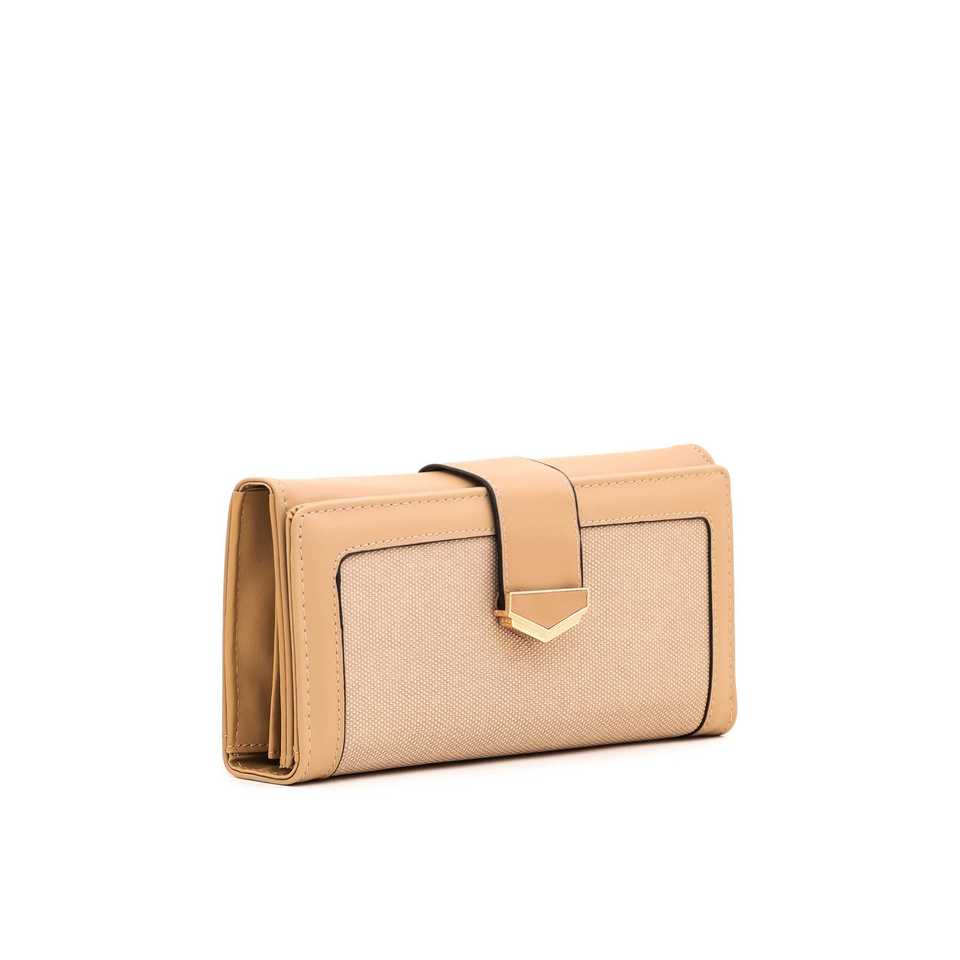 กระเป๋าสตางค์ P70752ยาวทำด้วยมือสีเบจแบบลำลองที่ใส่บัตรพร้อมฝาปิดหนังวัวลายผ้าไนล่อนซับในลายโลโก้สีเบจ
