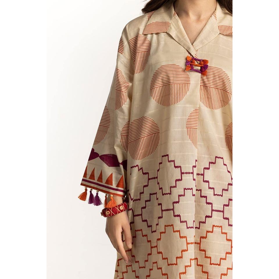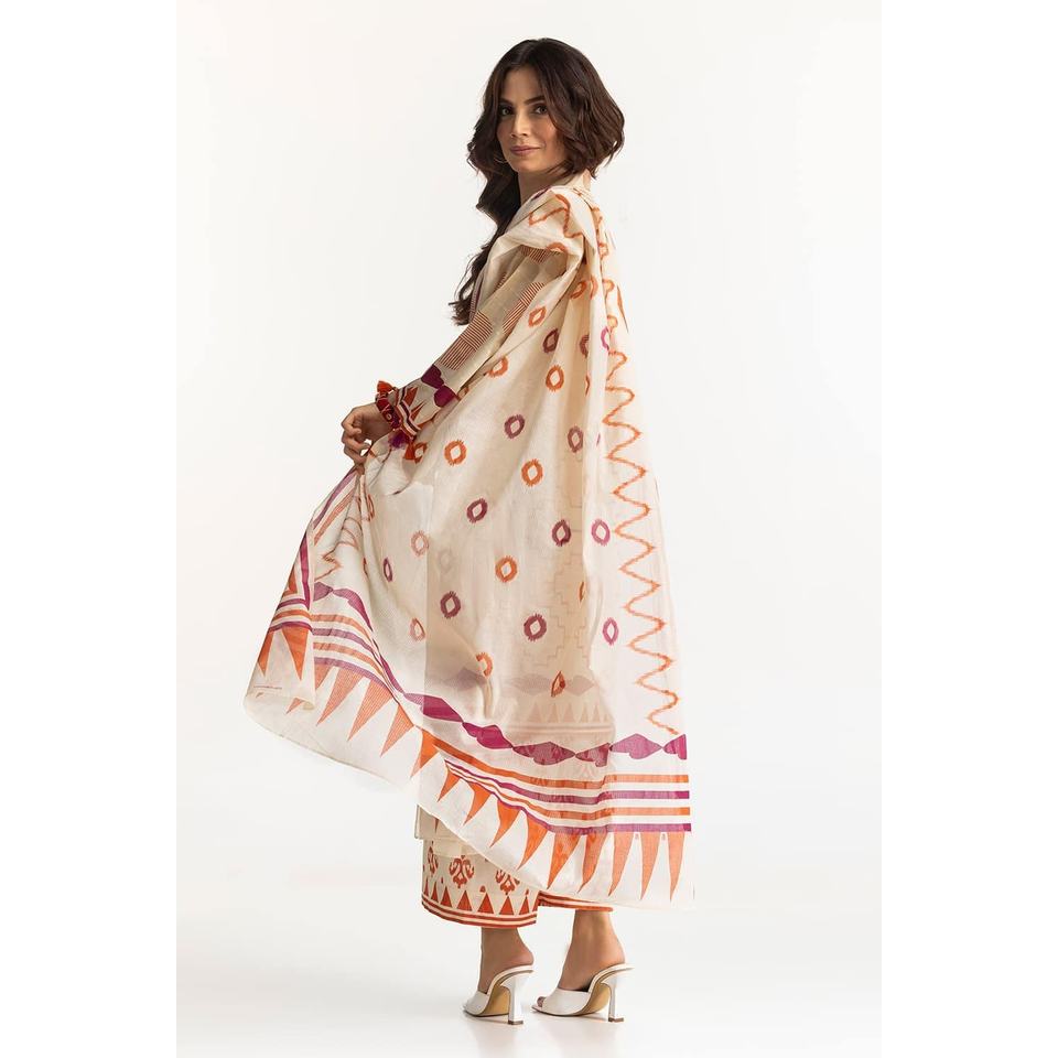 ชุดสูทผู้หญิง 3 ชิ้น สีเบจ ลายแจ็คการ์ด สำหรับใส่ทำงานหรือลำลอง ตกแต่งด้วยกระดุมและจีบ เหมาะสำหรับฤดูร้อน