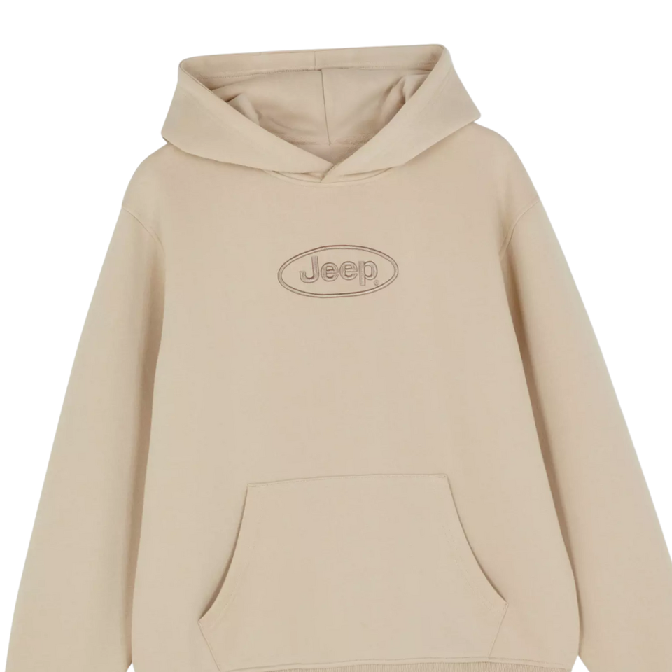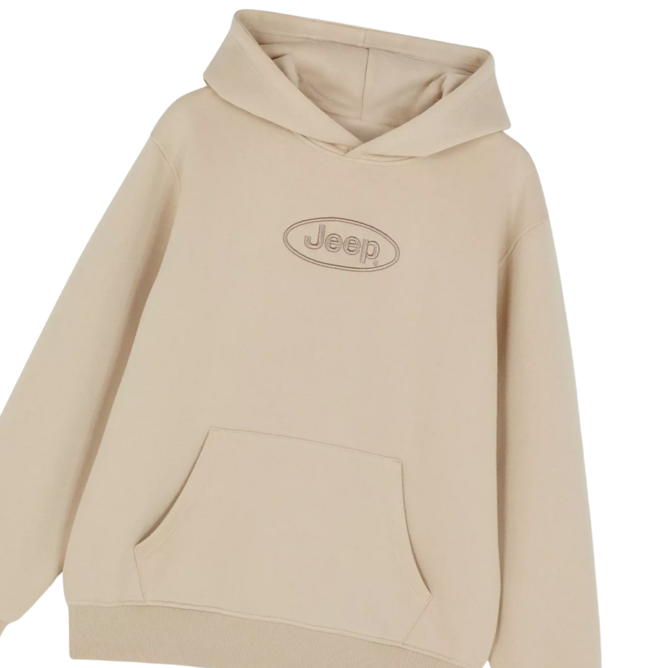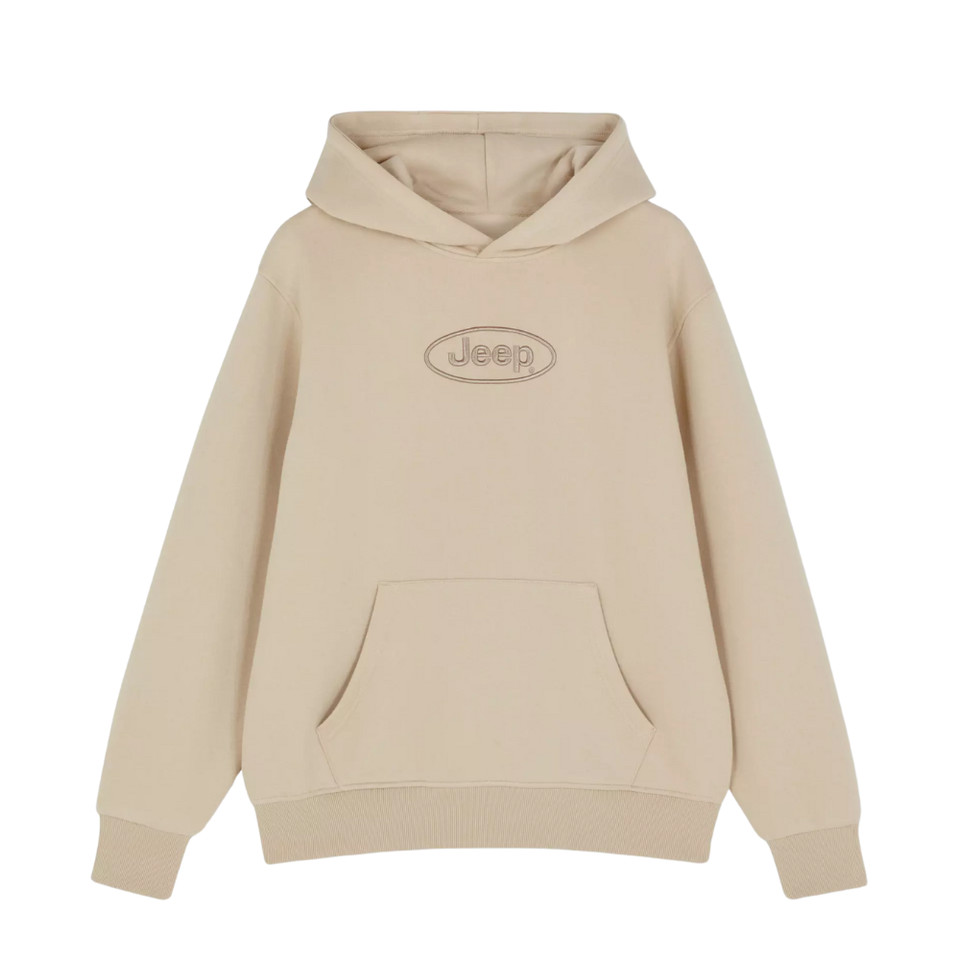 เสื้อฮู้ดโลโก้รถจี๊ปสีเบจโอเวอร์ไซส์ผ้าฝ้ายผ้าฟลีซสวมหัวเสื้อวอร์มแฟชั่นอบอุ่นมีสไตล์