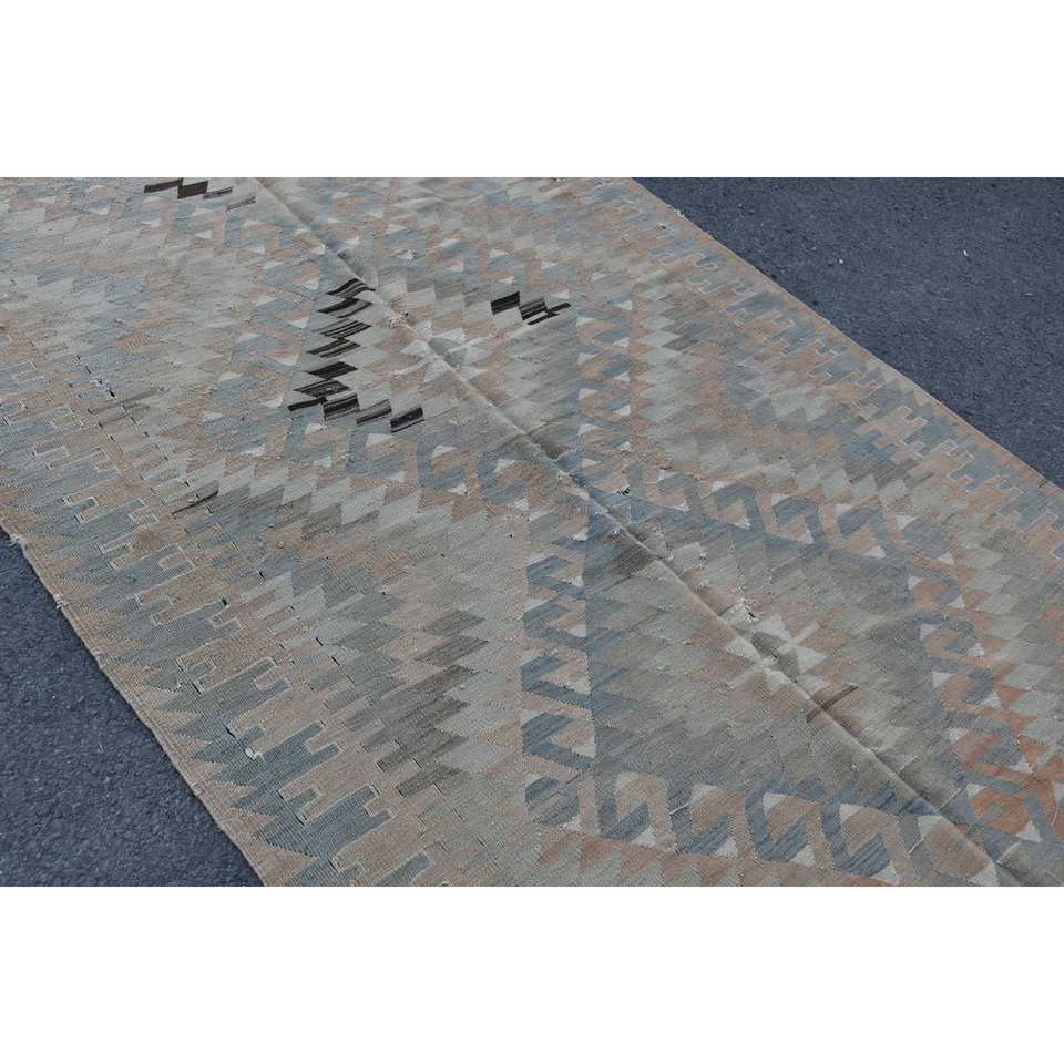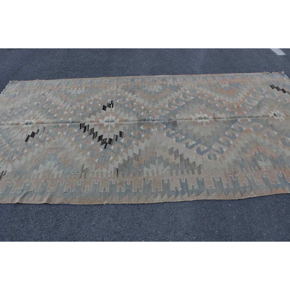 พรมขนแกะตุรกีสีเบจ kilim 5.4 x 10.7ft แจ็คการ์ดสานแบบแบนพร้อมลวดลายนามธรรมกองยางพาราสูง