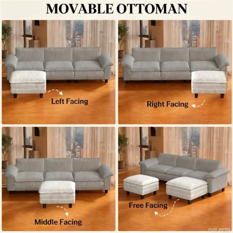 โซฟาแบ่งส่วนรูปตัว L สีเบจสำหรับห้องนั่งเล่น