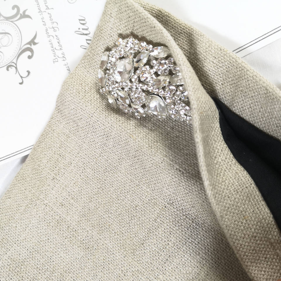 กระเป๋าคลัทช์เชิญผ้าลินินสีเบจรูปแบบไม่ซ้ำใครสำหรับงานแต่งงาน