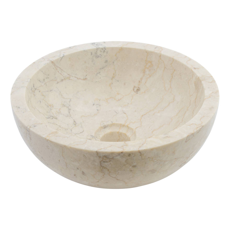 อ่างล้างหน้าหินอ่อนสีเบจหินธรรมชาติอ่างล้างหน้าแบบกลมสำหรับใช้ในห้องน้ำ