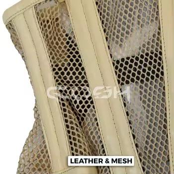 คอร์เซ็ทตาข่ายสีเบจและหนังเสริมโครงเหล็กใต้หน้าอก ระบายอากาศได้ดี ช่วยกระชับสัดส่วน