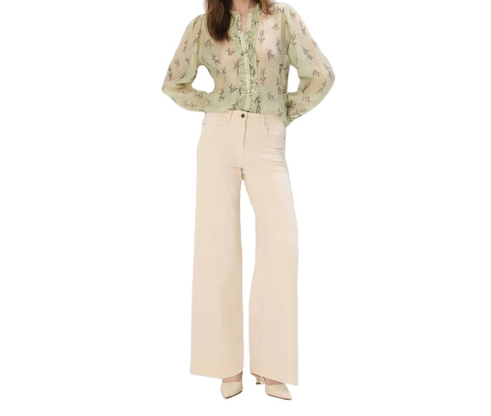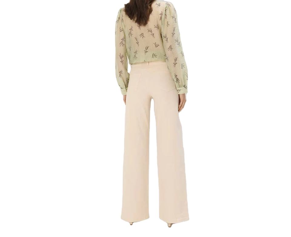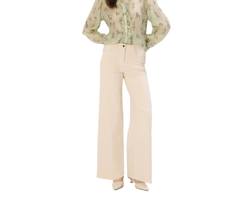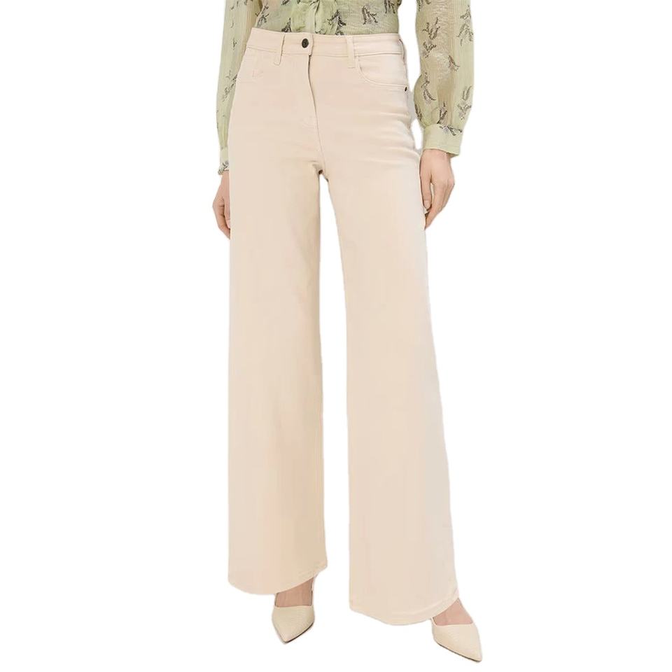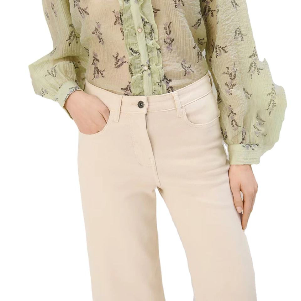กางเกงยีนส์เดนิมสีเบจเอวกลางทรงขากว้างสำหรับผู้หญิง ทรงตรง ผ้าฝ้าย ใส่สบาย กันน้ำ ระบายอากาศ เป็นมิตรกับสิ่งแวดล้อม ความยาวเต็มตัว
