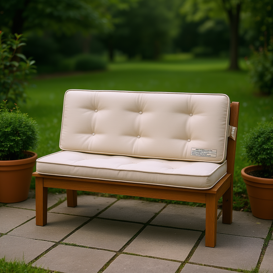 เบาะรองนั่งกลางแจ้งผ้าอ๊อกซ์ฟอร์ดสีเบจ โพลีเอสเตอร์ 100% แบบเย็บติดกัน รูปทรงสี่เหลี่ยมผืนผ้า ถอดซักได้ อุปกรณ์เสริมสำหรับที่นั่งกลางแจ้ง
