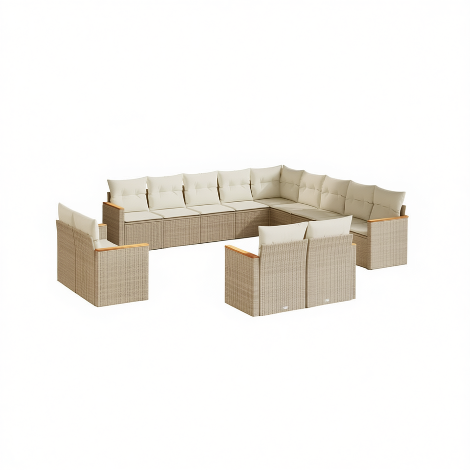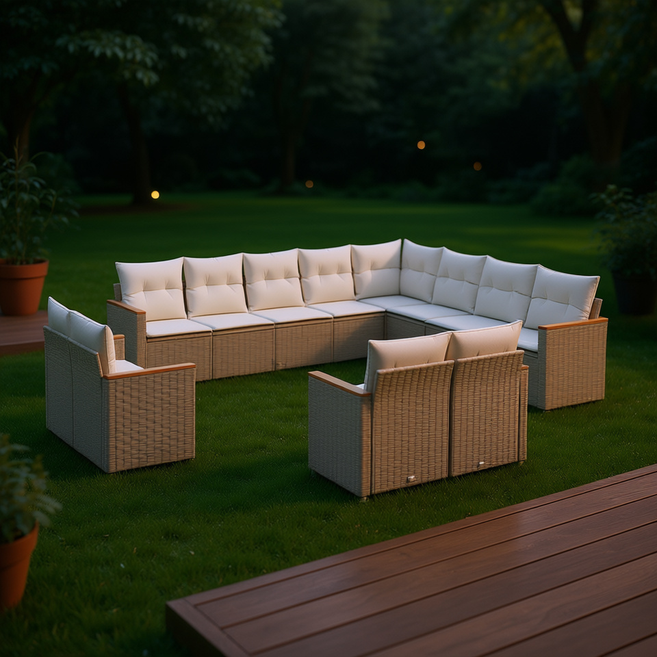 ชุดโซฟาหวายสีเบจสำหรับสวน พร้อมเบาะโฟมความหนาแน่นสูง เฟอร์นิเจอร์กลางแจ้งกันน้ำ ดีไซน์ร่วมสมัย