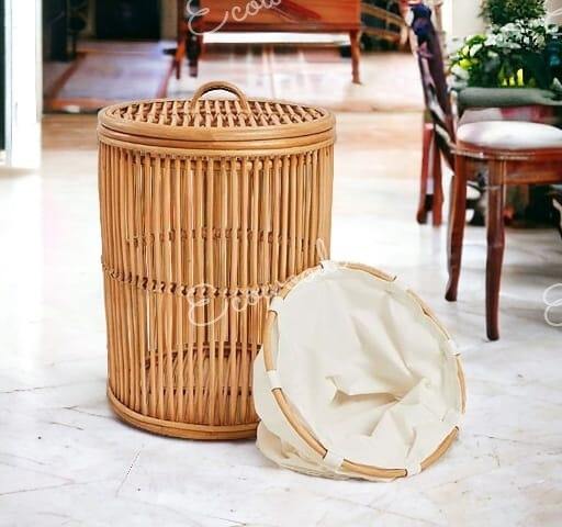 ถุงซักผ้าหวายสีเบจและไม้ไผ่ฝาปิดตะกร้าหวายสานทำด้วยมือและถังขยะไม้ไผ่ขนาดใหญ่ถุงผ้าซักผ้า