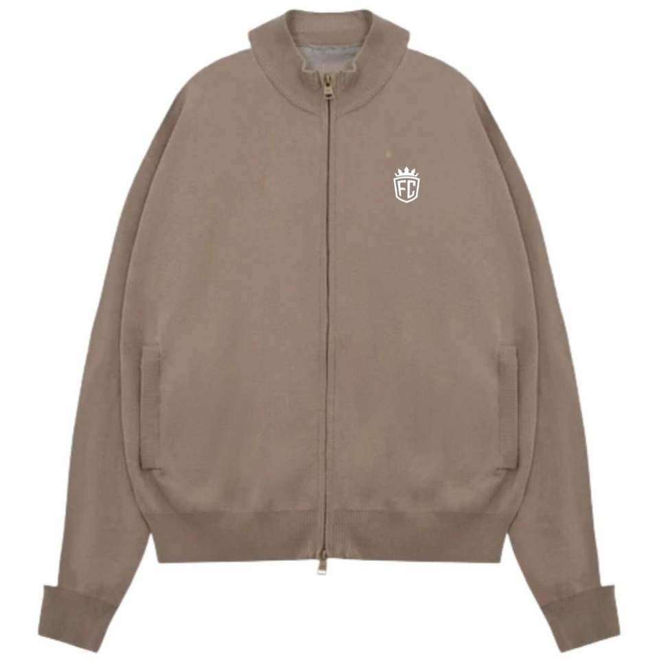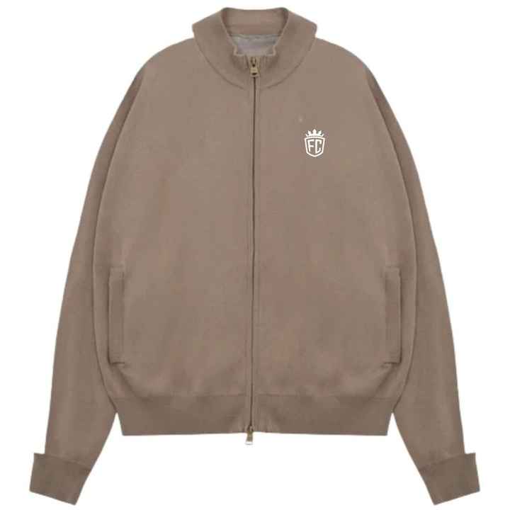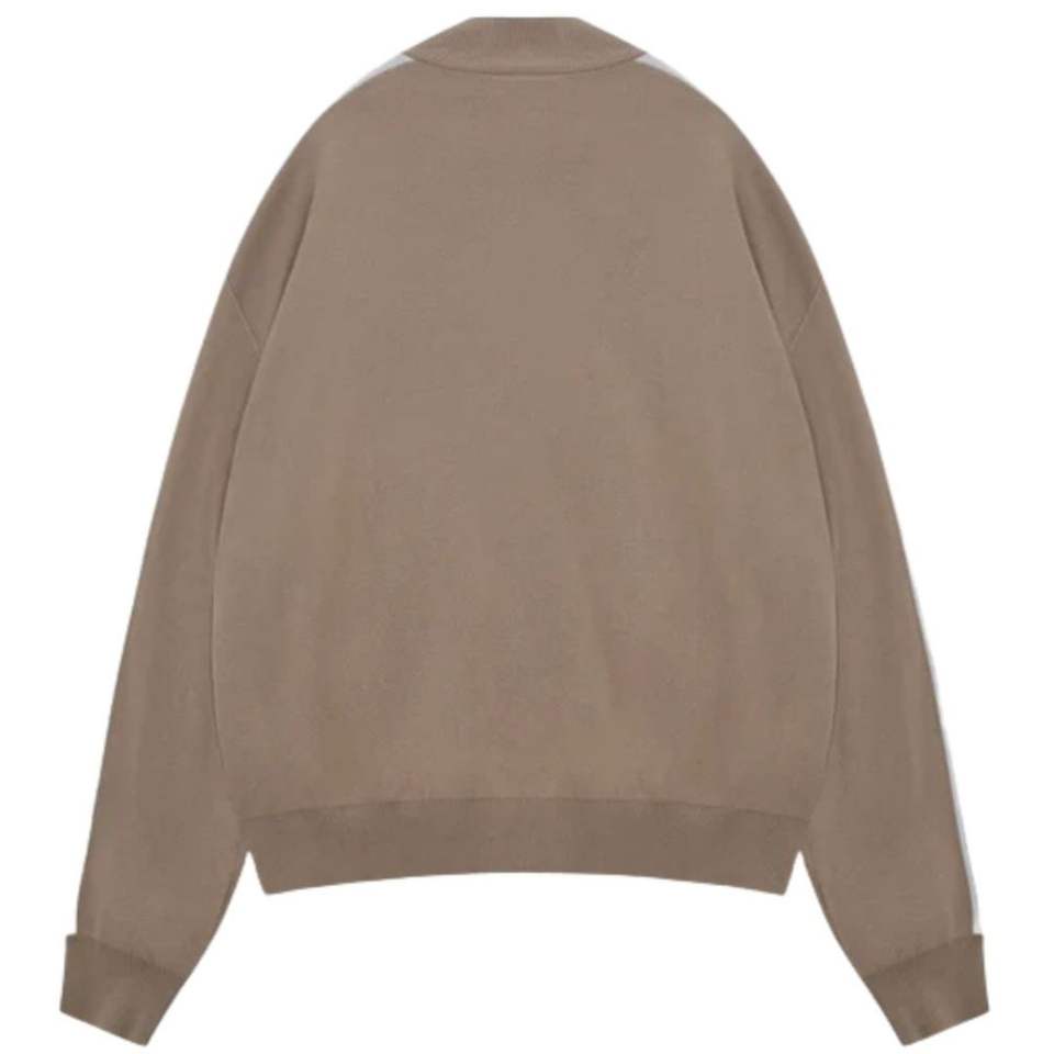 เสื้อแจ็คเก็ตไหมพรมสีเบจลายทางด้านข้าง ซิปหน้า สไตล์สตรีทแวร์ แขนจั๊มพ์ ผ้าถักนุ่ม สวมใส่สบาย เหมาะสำหรับผู้ชาย คุณภาพพรีเมียม ทรงพอดีตัว