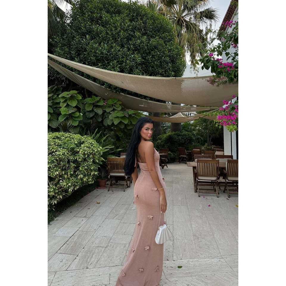 เดรสยาวสีเบจแบบผูกคอ สายเดี่ยว สำหรับผู้หญิง สไตล์หรูหรา เหมาะสำหรับงานปาร์ตี้ สายสปาเก็ตตี้ ลายเรียบ ไซส์ XS สำหรับใส่ในช่วงกลางวัน ฤดูใบไม้ผลิ/ฤดูใบไม้ร่วง