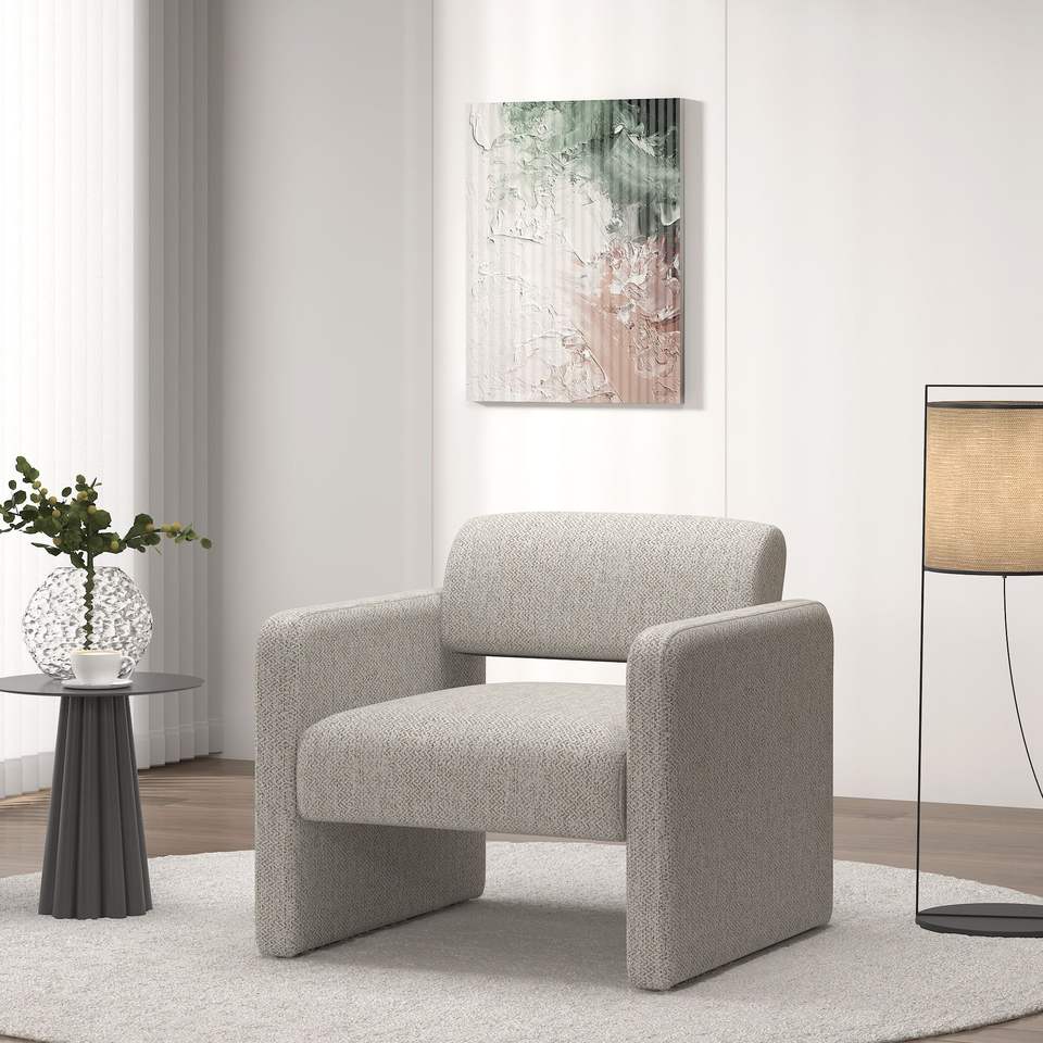 Beige Stripe Single Sofa Chair with Comfortable Armrests 30.9\"x30.51\"x30.11\" for Dining Room Bedroom Living Room Reception