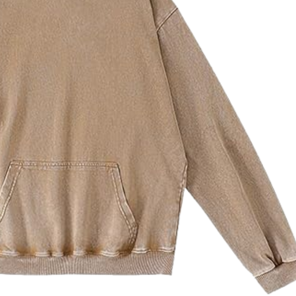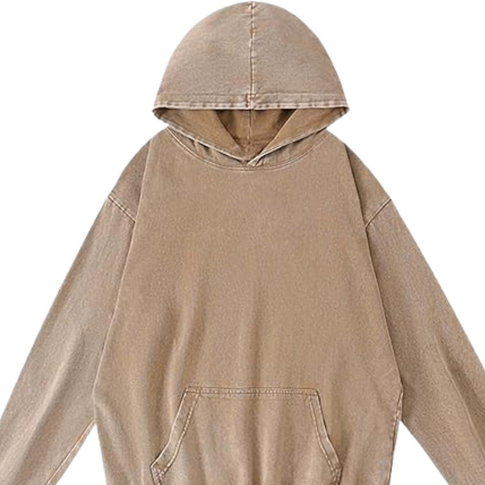 เสื้อฮู้ดสีเบจแทนฟอกสีแบบวินเทจ ทรงโอเวอร์ไซส์ ผ้าฝ้ายฟลีซเนื้อนุ่ม สไตล์สตรีทแวร์ เหมาะสำหรับใส่ในฤดูหนาว
