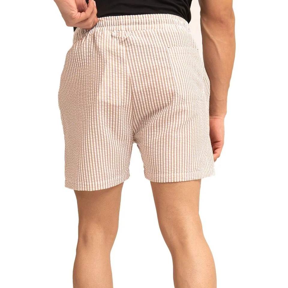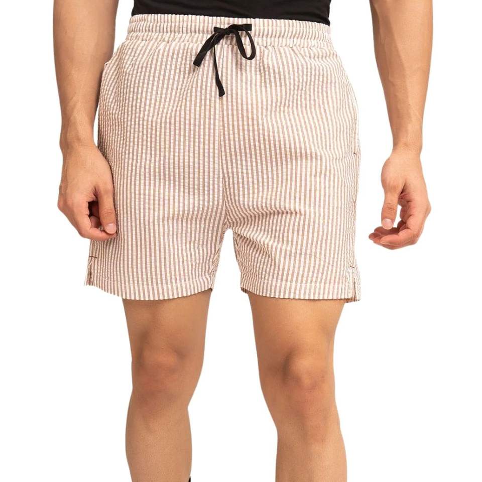 กางเกงขาสั้นออกกำลังกายลายทางสีเบจสำหรับผู้ชาย แห้งเร็ว เหมาะสำหรับวิ่ง ออกกำลังกาย เล่นกีฬา และฝึกซ้อม