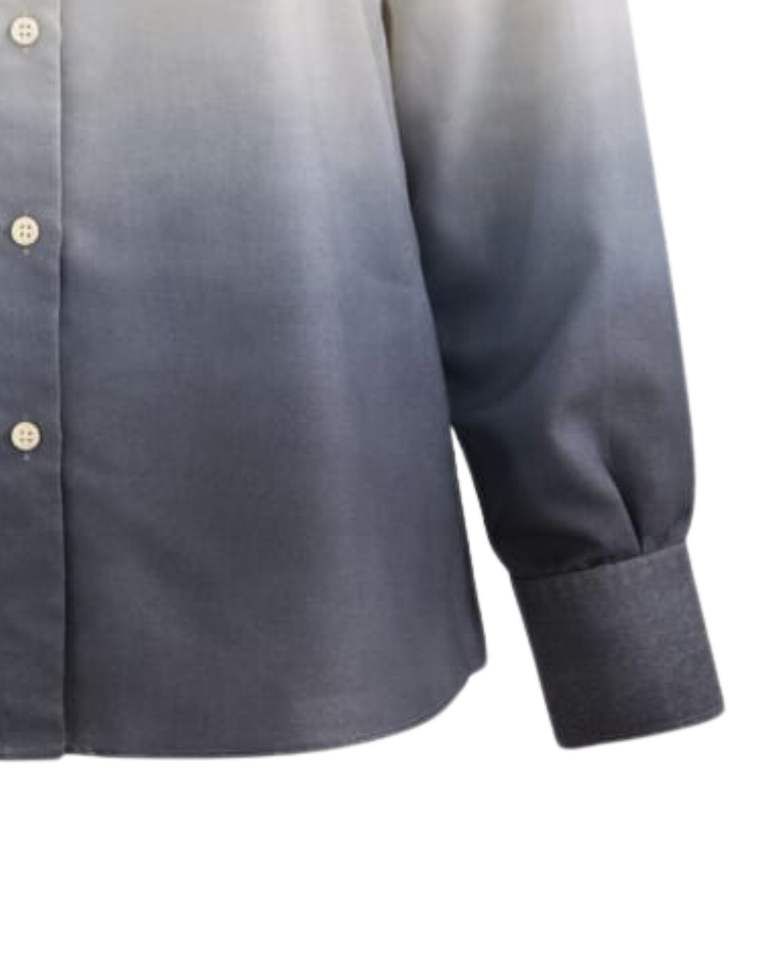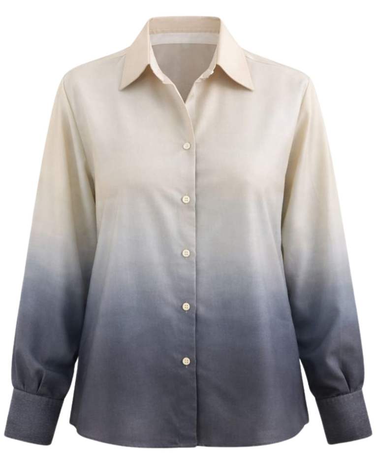 เสื้อเชิ้ตผู้หญิงแขนยาวสีเบจไล่เฉดสีเทาชาร์โคล ติดกระดุม ทรงลำลอง สไตล์ออฟฟิศ ผู้ผลิตเสื้อผ้าแบบ OEM รับผลิตตามสั่ง