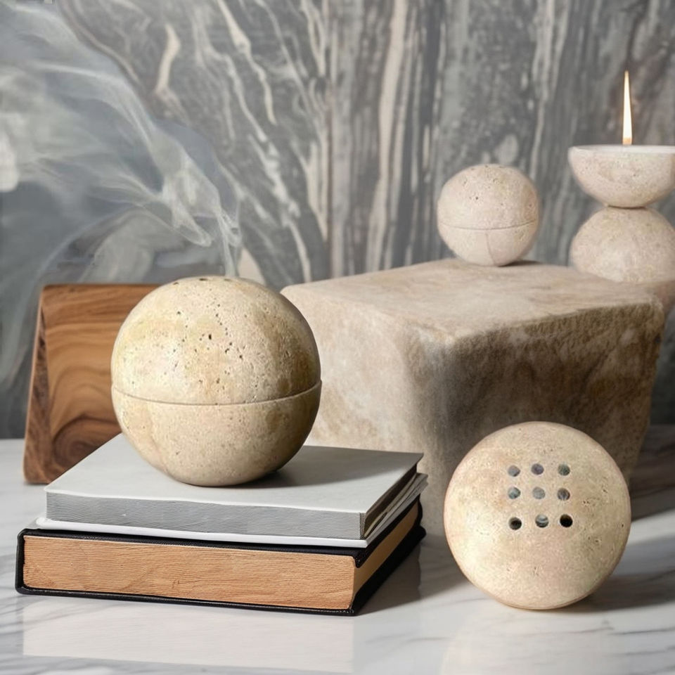Beige Travertine Incense Holder Marble Pyramid Spiritual Decor Stone Burner Home Meditation Artisanal Handcrafted Elegant Gift