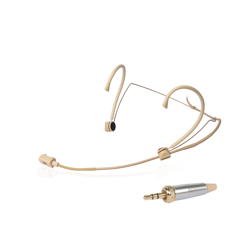 ไมโครโฟนแบบมีสายสีเบจสำหรับระบบกระจายเสียงไร้สาย ไมโครโฟนแบบเกี่ยวหูสองข้าง
