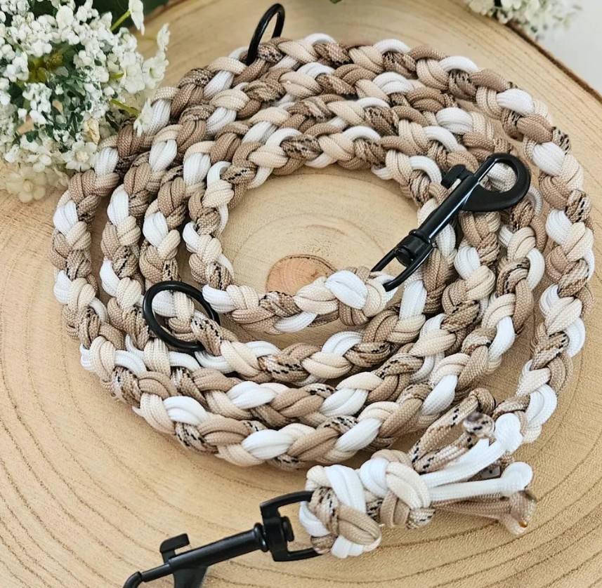 สายจูงสุนัขแบบถัก สีเบจและสีน้ำตาล แข็งแรง ทนทาน สีเบจ สีน้ำตาล สีดำ สีครีม ทำด้วยมือ หลากสี ทำจากเชือกพาราคอร์ด ปรับแต่งได้