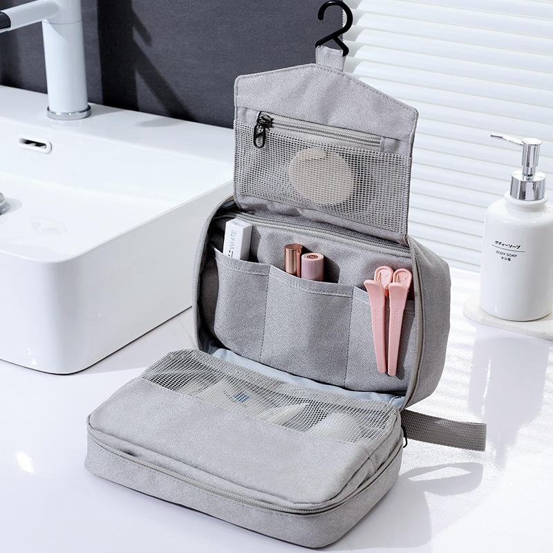 กระเป๋าใส่เครื่องสำอางแบบแขวน Beilian สีเทา พร้อมตะขอสำหรับจัดเก็บและจัดระเบียบเครื่องสำอางสำหรับการเดินทาง
