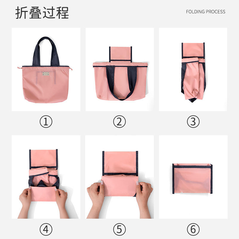 กระเป๋าช้อปปิ้งพับได้ขนาดใหญ่ Beilian สีพื้น ปิดด้วยเชือกผูก กระเป๋าใส่ของชำ พกพาสะดวก ความจุสูง ผลิตจากเมืองอี้หวู่