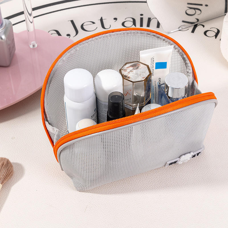 Beilian Toiletry Bag Round Mesh Portable Travel Makeup Storage Bag Orange Gray Blue Black Rose Red Purple