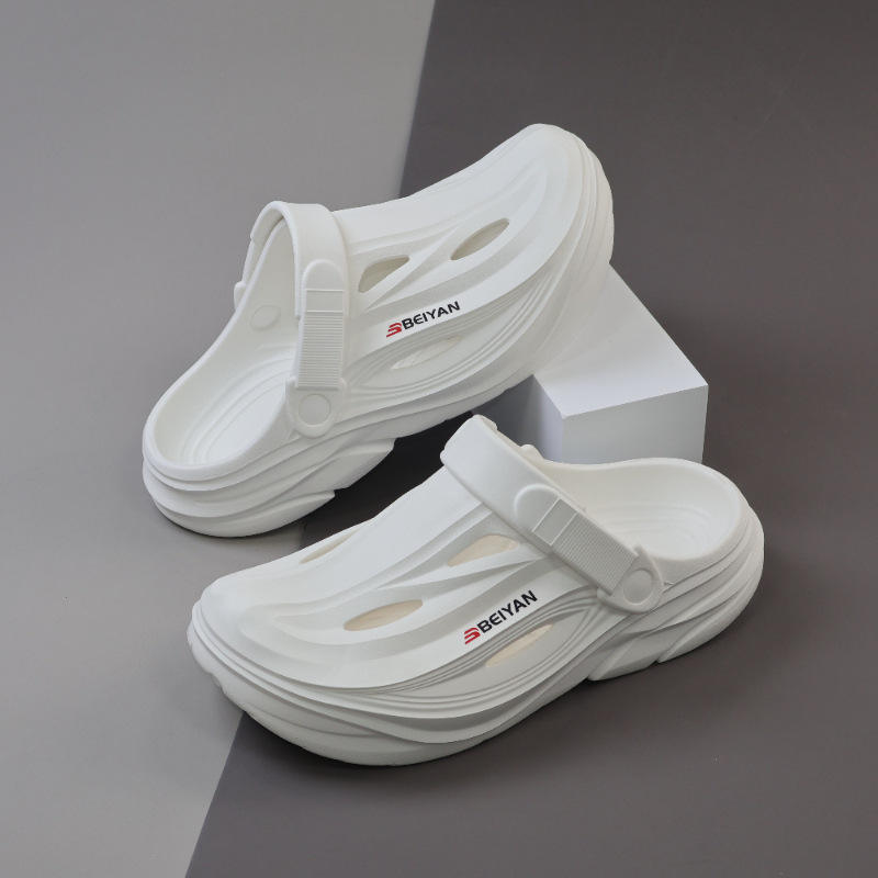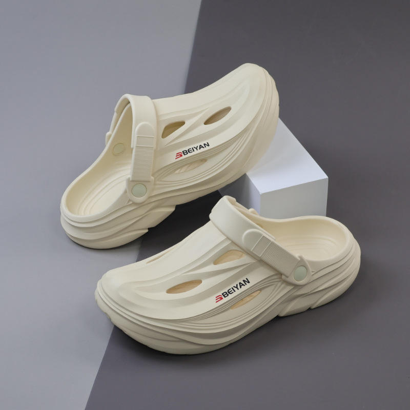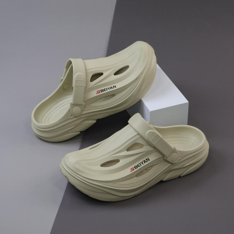 รองเท้าแตะผู้ชาย Beiyang สำหรับฤดูร้อน แบบสวมใส่กลางแจ้ง กันลื่น พื้นหนา EVA ปิดนิ้วเท้า รองเท้ากีฬา รองเท้าขับรถ ส้นกลาง 2-3 ซม.