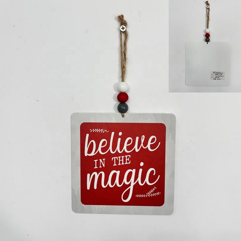 ป้ายโลหะพิมพ์ลาย UV รูปทรงสี่เหลี่ยมผืนผ้า สไตล์วินเทจ ตกแต่งต้นคริสต์มาส ลาย "Believe Magic" สำหรับเทศกาลคริสต์มาส