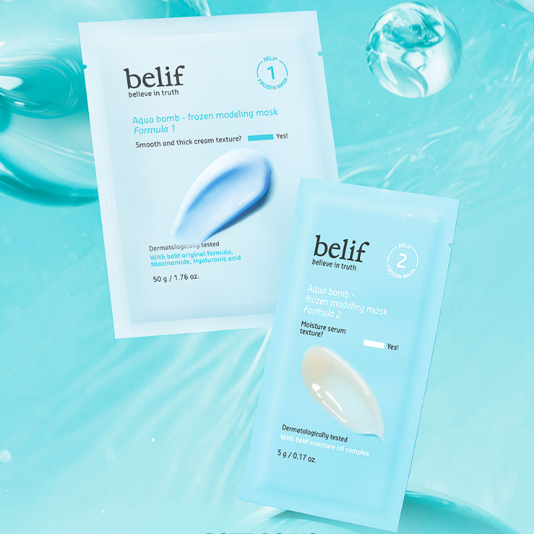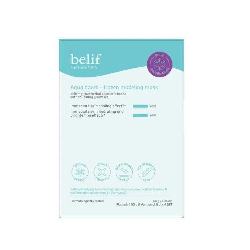 Belif Aqua BOMB ชุดเซ็ต4เสิร์ฟหน้ากากใบหน้าแบบแช่แข็งพร้อมชามผสมและไม้พาย