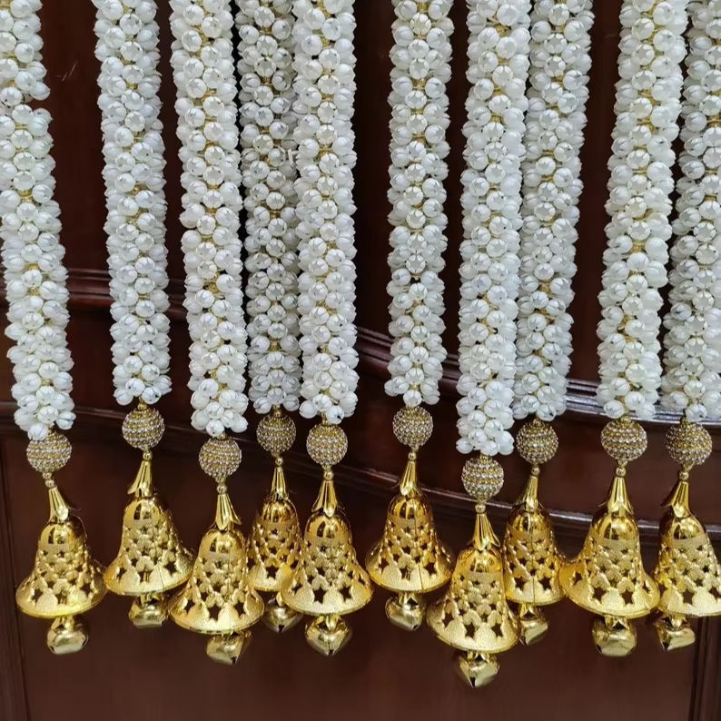 กระดิ่งแขวนผนังประตูม่านแขวนตกแต่ง Mogra/มะลิสายดอกไม้พวงมาลัยตกแต่งงานแต่งงานธีมปาร์ตี้ฉากหลังดอกไม้