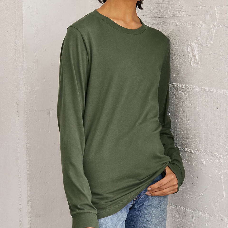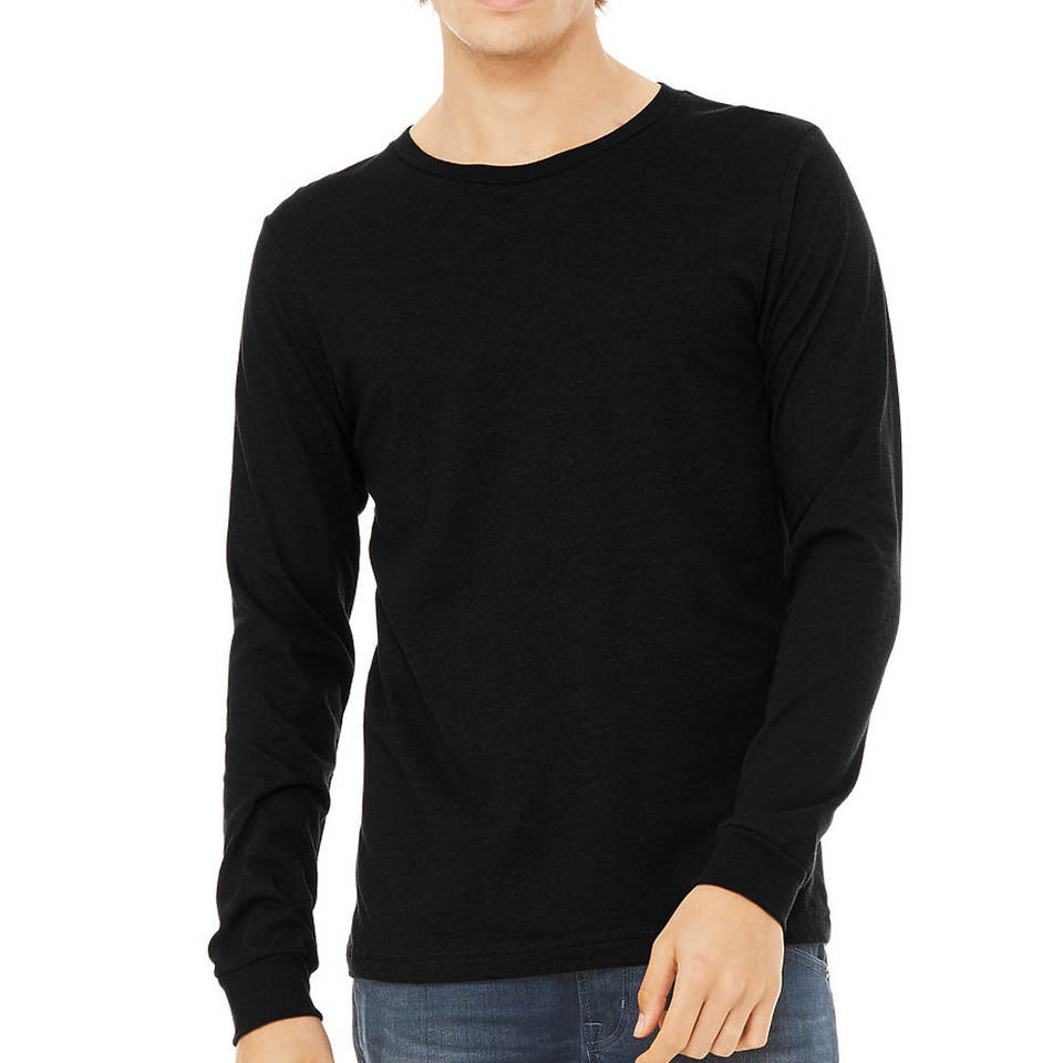 เสื้อยืดคอกลมแขนยาวผ้าใบสีดำพิมพ์ลายที่กำหนดเองเบลล่า