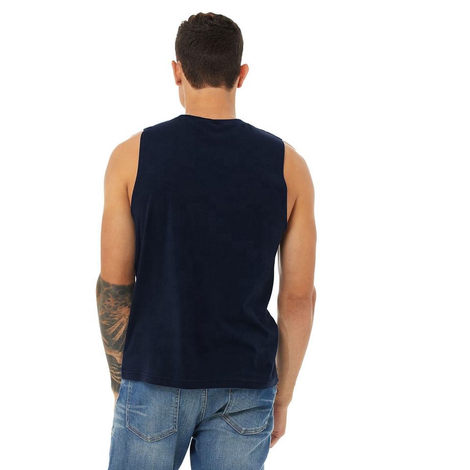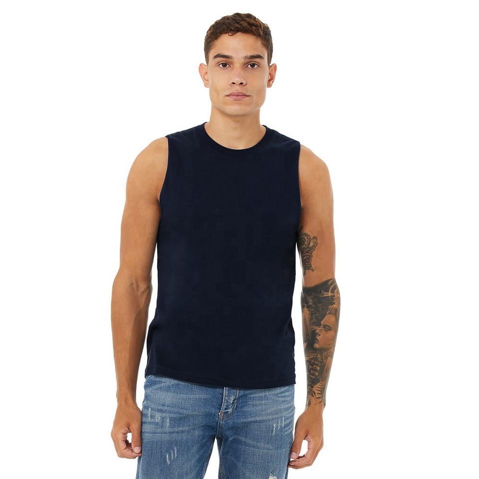 เสื้อกล้ามเนื้อเยอร์ซีย์ Bella+Canvas Navy Unisex - เสื้อเช็ดตัวและผ้าฝ้ายปั่นวงแหวน 100% ระบายอากาศได้ดีลําลองแขนกุดสําหรับผู้ชาย