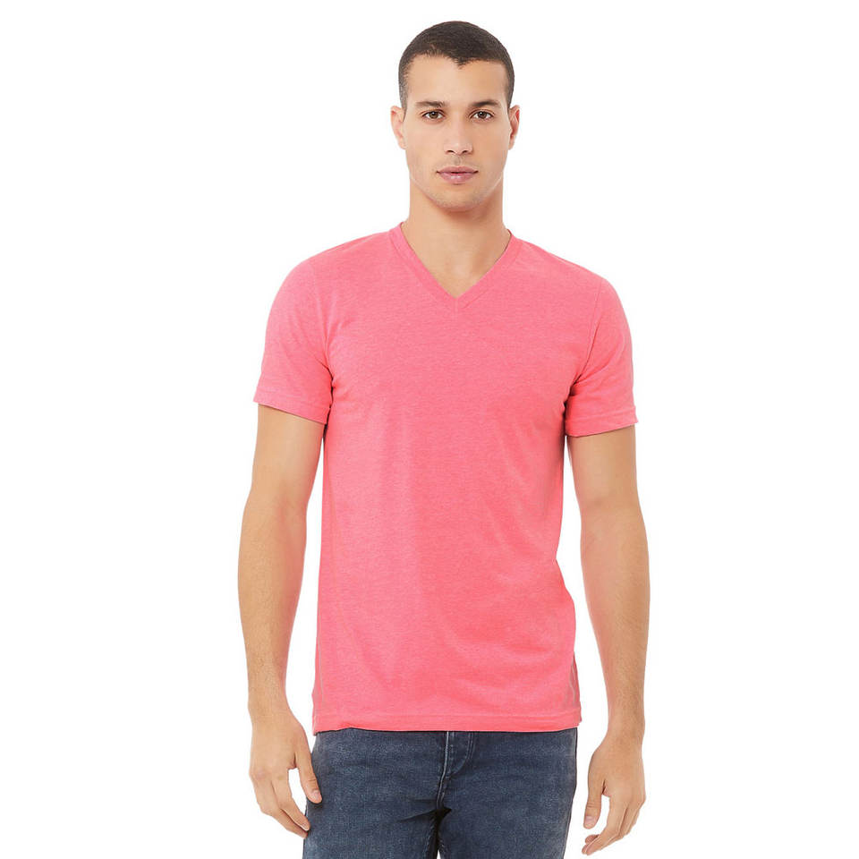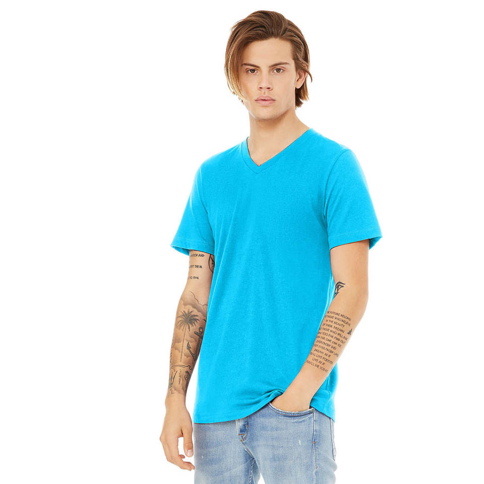 เสื้อยืดผ้าแคนวาสสีนีออนสีฟ้าคอวีออกแบบได้เองสำหรับทุกเพศเสื้อยืดแขนสั้นสวมใส่สบายของผู้ชายเสื้อยืดผ้าฝ้ายระบายอากาศได้ดี