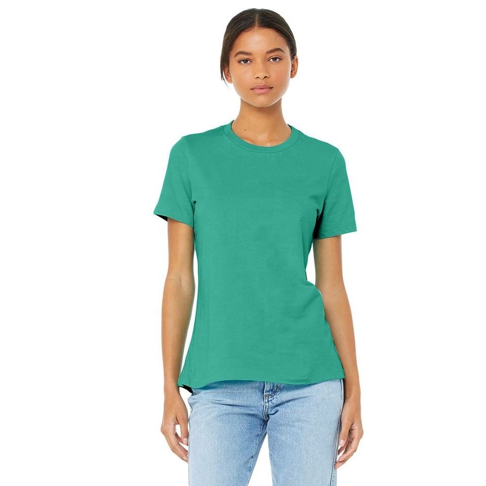 เสื้อยืดผ้าฝ้ายคอมบ์สำหรับผู้หญิงเสื้อเจอร์ซีย์แขนสั้นผ้าแคนวาสระบายอากาศได้ดีเสื้อ6400 100%