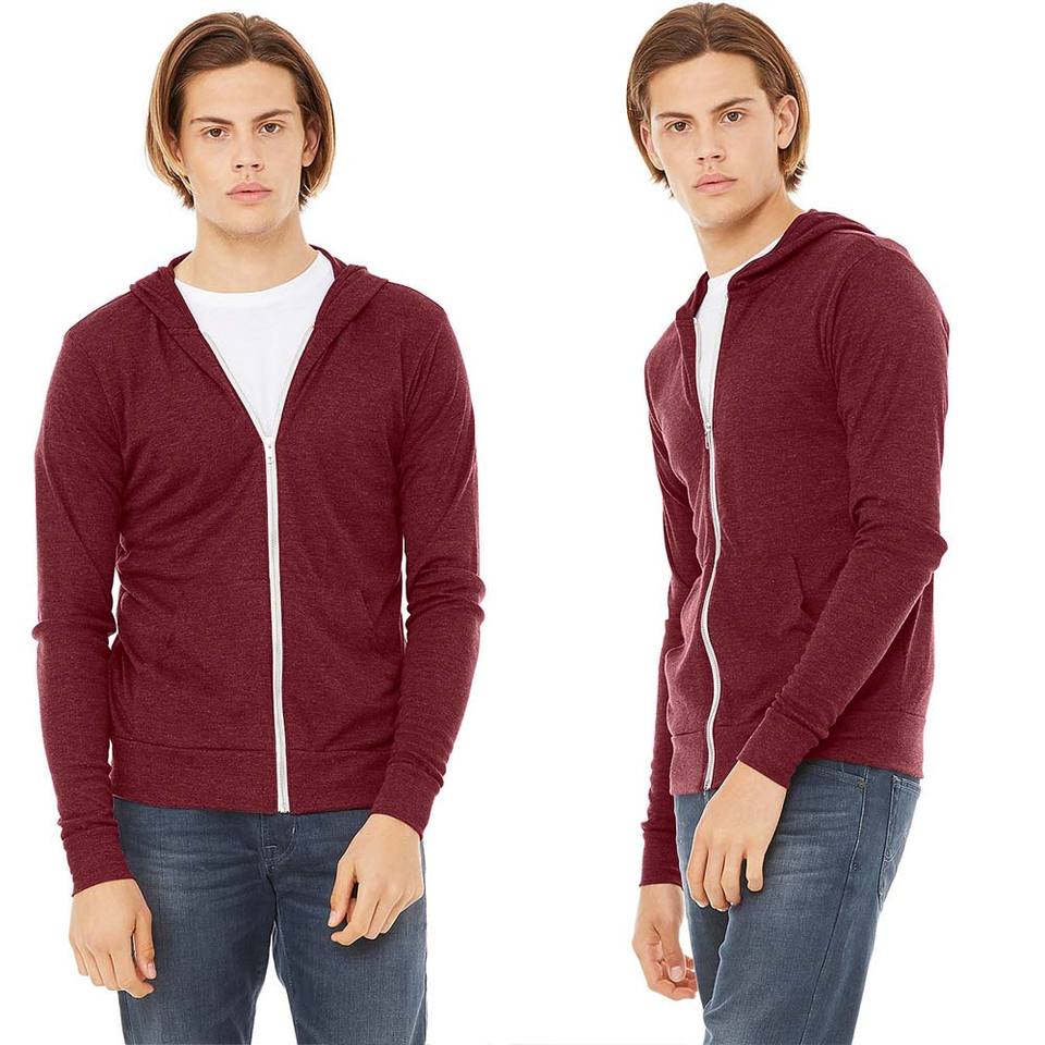 เสื้อฮู้ดดี้ปักลาย Bella+Canvas รุ่น Unisex ผ้าฝ้าย/ใยไผ่ ซิปยาวเต็มตัว สำหรับฤดูหนาว