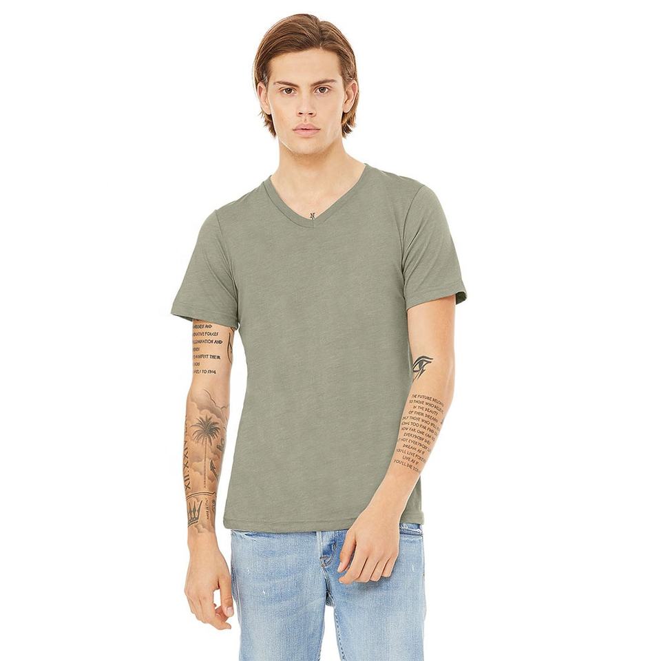 Bella + ผ้าใบ U Nisex Jersey เสื้อยืดคอวีแขนสั้นเสื้อยืดแขนสั้นระบายอากาศเสื้อยืดสําหรับผู้ชาย
