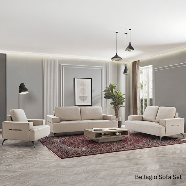 ชุดโซฟาห้องนั่งเล่น Bellagio สไตล์โมเดิร์น นั่งสบาย 3 2 1 ที่นั่ง หุ้มผ้าหรูหรา ขาโลหะ เฟอร์นิเจอร์สำหรับอพาร์ทเมนต์