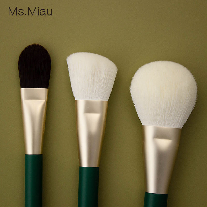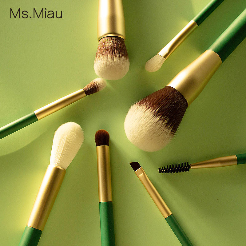 Belleza ชุดแปรงแต่งหน้ามืออาชีพ7ชิ้นพร้อมคอนซีลเลอร์ทำจากเส้นใยขนสัตว์ทำจากใยไฟเบอร์มีที่จับสีเขียวเบิร์ชของเยอรมัน