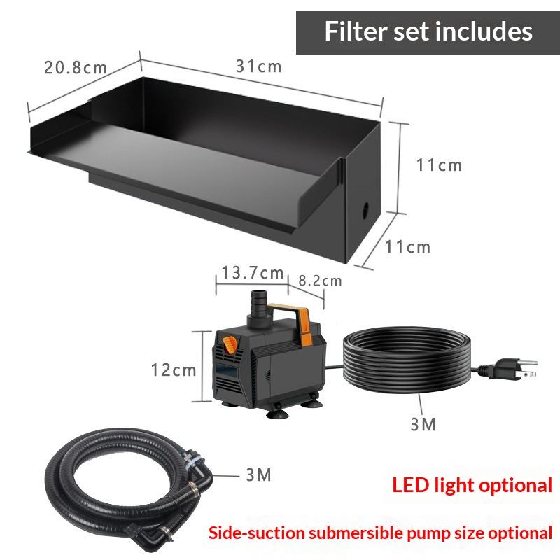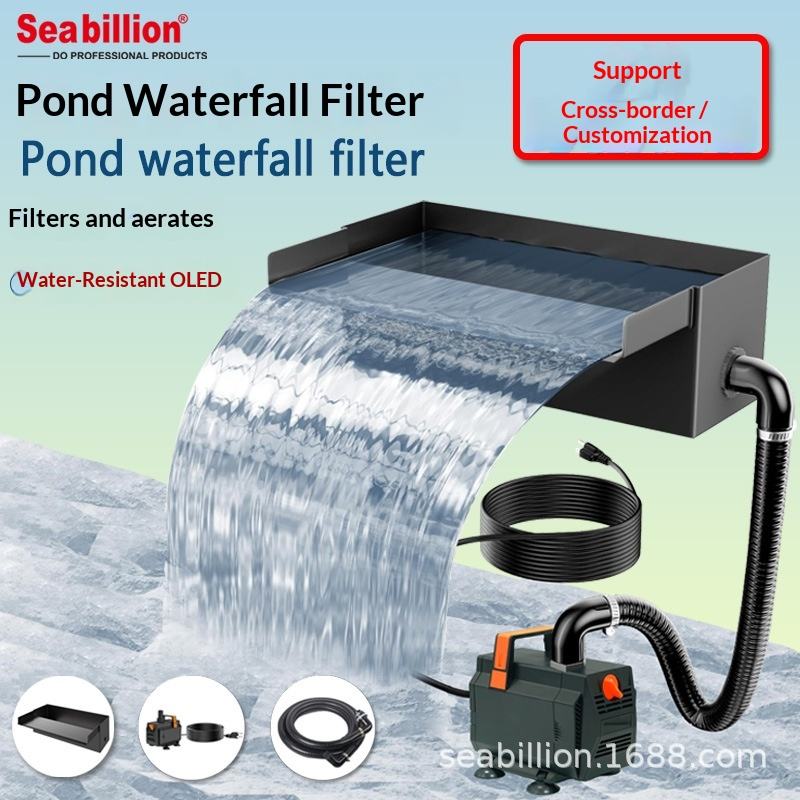 ตัวกรองน้ำตกแบบ Bellows Pond ทำจากสแตนเลส 304 พร้อมระบบเพิ่มออกซิเจนในตัว ไฟ LED ในตัว สำหรับตู้ปลา กล่องกรองด้านบน