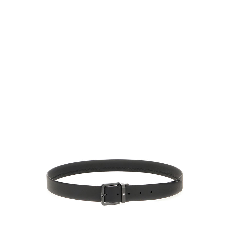 เข็มขัดที่ตระหนักในหนังที่อุดมไปด้วยโลโก้เคลือบสัญลักษณ์ที่ด้านหน้า -การปิดหัวเข็มขัดแบบปรับได้ Montblanc ภายนอก: หนัง100%