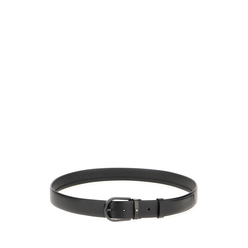 เข็มขัดที่ตระหนักในหนัง saffiano. -การปิดหัวเข็มขัด Montblanc ภายนอก: การตกแต่งหนัง100%: สีดำโลหะปืน