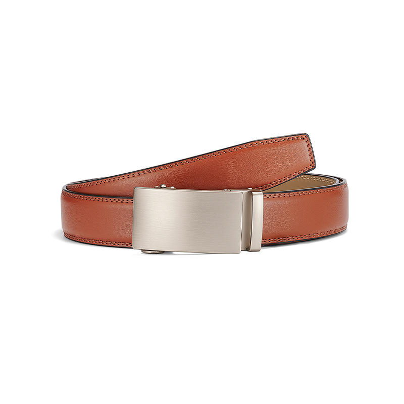 เข็มขัดหนังวัวแท้สำหรับผู้ชาย สไตล์ลำลองสำหรับธุรกิจ หัวเข็มขัดอัตโนมัติโลหะผสม กว้าง 3.5 ซม. ยาว 120 ซม.