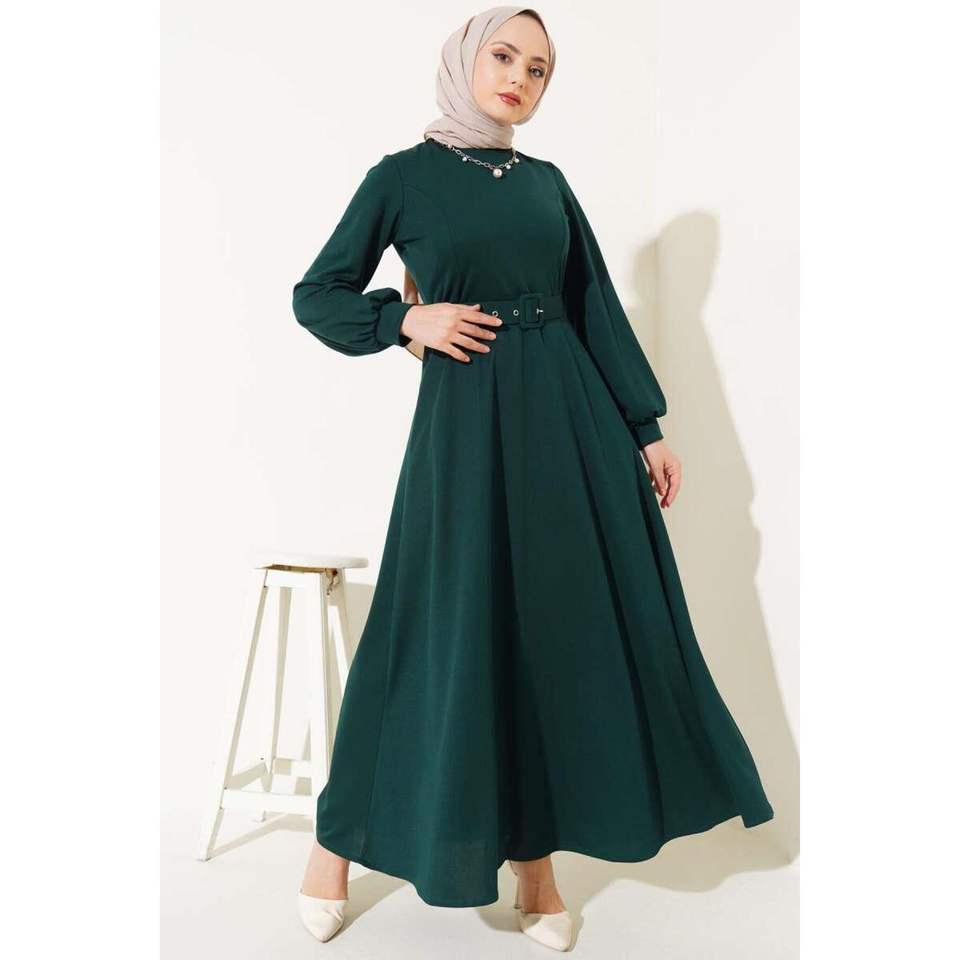 ชุดเดรสสายรัดเอวสีเขียวมรกตลายปกติ TR ไม่ระบุที่มา