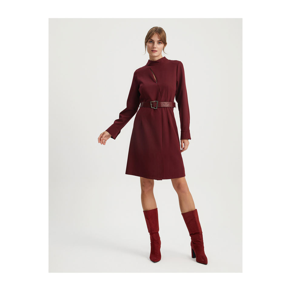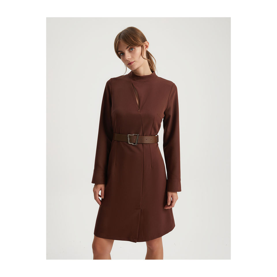 Belted Zippered Arched Belt Long Arm Very Colorful Dress