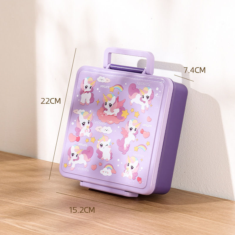 กล่องข้าวพลาสติกน่ารัก Bencircle B276 พร้อมถ้วยซุปสำหรับเด็ก มีหูจับ พิมพ์ลายด้วย UV วัสดุเกรดอาหาร ใช้กับไมโครเวฟและเครื่องล้างจานได้