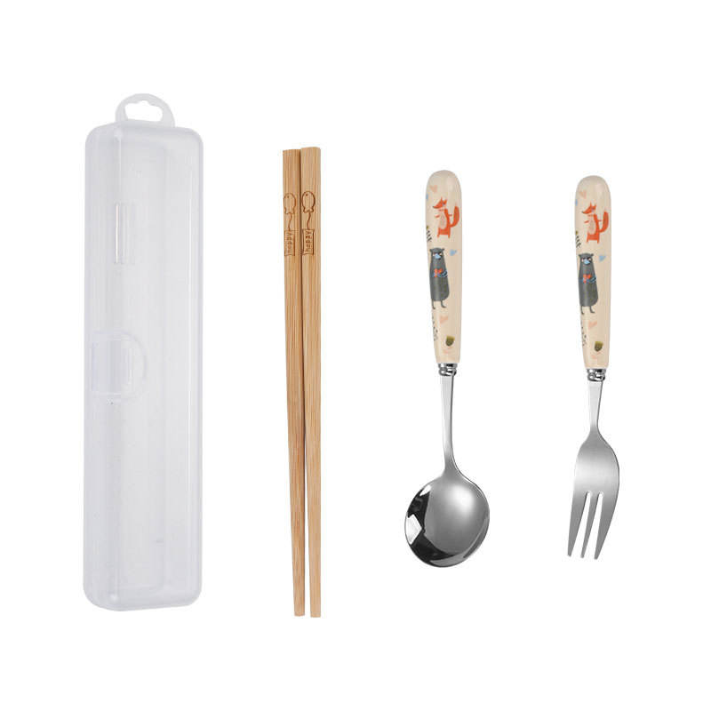 CT01 Bencircle ชุดช้อนส้อมลายกระต่ายช้างนกฮูกจิ้งจอกพร้อมช้อนส้อมตะเกียบด้ามเซรามิกชุดอุปกรณ์รับประทานอาหาร